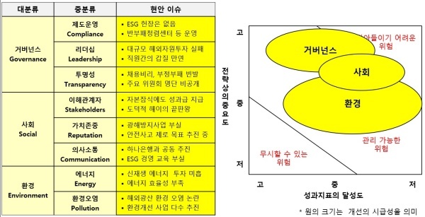 하지만 정작 ESG 헌장은 제정하지 않았지만 윤리경영을 위한 윤리헌장‧윤리강령‧임직원 행동강령‧임원직무 청렴규정‧윤리경영위원회 운영업무 표준 등은 정돈했다.