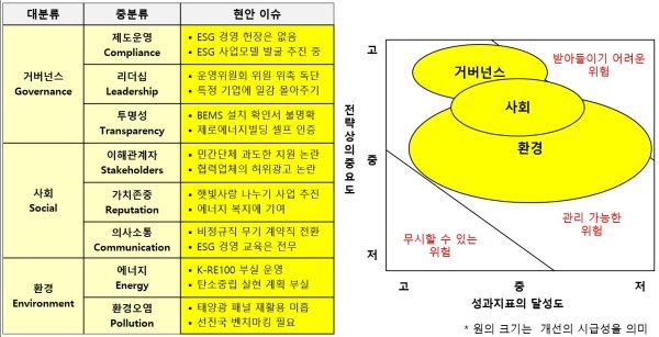 글로벌 스탠다드에 적합한 국내 표준을 제정해 기업들의 부담을 덜어줘야 함에도 노력이 미진한 셈이다. ESG 경영을 철저하게 연구하지 않았을 것으로 추정된다.