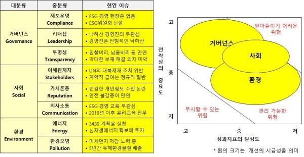 사회(Social)도 문제가 많은 영역이다. 유사한 업무를 수행하고 있는 직원 간 연봉 격차가 2배로 상생경영의 걸림돌로 작용하고 있다. 발전소 노동자의 산재 사고 역시 위험을 외주화한 결과다. 사업 추진 과정에서 협력업체·지역주민들을 무시해 반발을 초래하는 것도 경계해야 한다. 이해관계자와 소통하고 서로의 가치를 존중하려는 자세를 견지할 필요가 있다.