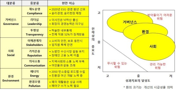 사회(Social)도 다양한 이해관계자와 상생하려는 의지를 내비춰야 협조를 얻을 수 있다. 한국은 삼면이 바다로 둘러쌓여 농업만큼 어업이 중요하다. 수협중앙회가 해양오염과 어장 황폐화 이슈에 적극적으로 개입해야 하는 이유다.