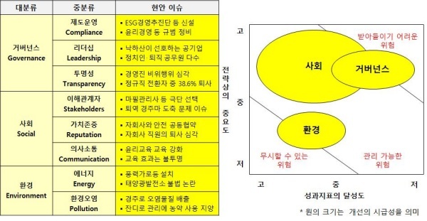 환경(Environment)은 오염물질 배출 최소화를 통해 친환경 사업장·친환경 경마공원 조성을 통한 환경경영를 실천해 나가겠다는 정책은 훌륭하다. 과천 경마공원이 그린벨트 내에 있으므로 훼손하지 않도록 주의해야 한다. 제4경마장도 전문가의 지적을 거울삼아 친환경적으로 조성하도록 노력하길 바란다.