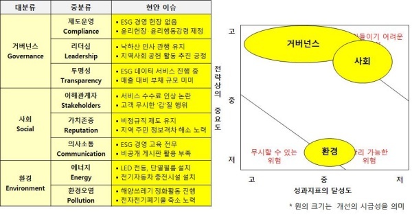 홈페이지에 ESG 교육을 진행한 실적과 ESG 교육을 위한 교재는 없다. 게재된 ESG 관련 정보와 보고서를 확인한 결과 ESG 경영과는 거리가 멀었다. 온라인 비윤리행위 신고센터가 운영되고 있으며 윤리경영을 위한 상담은 전화로만 가능하다. 다른 공기업이 비공개 게시판을 활용해 신고를 독려하는 것과 차이가 있다.