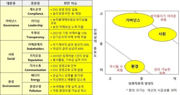 △거버넌스(Governance·지배구조)=ESG 경영헌장을 제정하지 않았지만 윤리경영에 관한 체계적인 조직 및 제도를 구비한 점을 긍정적으로 평가했다. 이러한 노력은 직원의 비위행위가 2019년 1건에 불과한 것으로 증명된다.