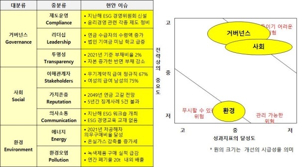 홈페이지에 ESG 경영교육 자료는 없다. 지난해 ESG 워크숍을 개최했다는 사진 소식 외에는 ESG 교육 현황은 없다. ESG 경영위원회를 구성한 이후 ESG 경영을 어떻게 전개해야 할지 방향을 잡지 못한 것으로 추정된다.
