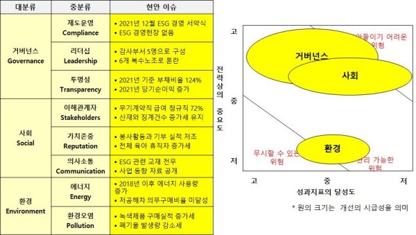 △거버넌스(Governance·지배구조)=지난해 12월 ESG 경영 선포식을 거행했지만 정작 ESG 경영헌장은 제정하지 않았다. 2018년 정규직 전환 이후 직원의 비위행위가 급증하고 있음에도 근절하기 위한 명확한 조치는 없다. 매출 규모는 커지만 용역단가가 낮아 정상적인 경영은 불가능한 수준이다.