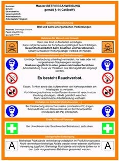 가장 많이 활용되며 접근이 용이한 데이터 은행으로는 '위험물질 정보 시스템' GESTIS, Gefahrstoffinformationssystem과 '화학 위험물질 정보 시스템' GisChem, Gefahrenstoffinformationssystem Chemikalien이 있다. 작업 현장에서 다루어지는 모든 위험 물질과 화학 물질에 대한 안전 정보가 저장되어 있다.
