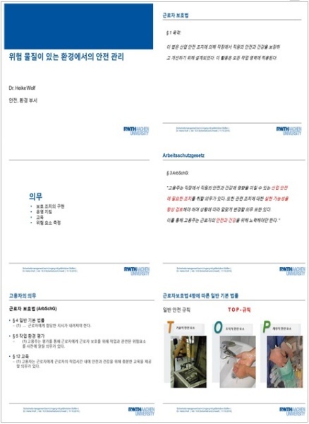 | 아헨공과대학교 산업안전부서(Rheinisch-Westfälische Technische Hochschule Aachen, Department of Facility Management) | ||||