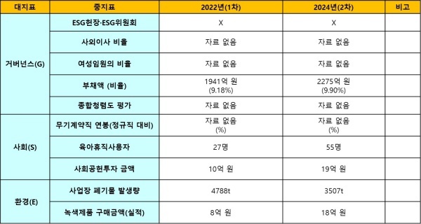 하지만 2024년 공기업 ESG 2차 평가에서 포함시켰다. 따라서 KGC의 ESG 경영을 2022년과 2024년으로 구분해 평가한 후 비교했다.