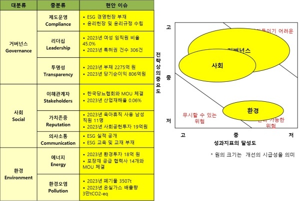 ◇ 제조업체이지만 환경은 무시 및 관리가능한 위험으로 평가... 사외이사·여성임원 수치는 공개해야