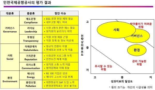 ▲ 인천국제공항공사의 ESG 경영 진단 평가 결과 [출처 = iNIS]