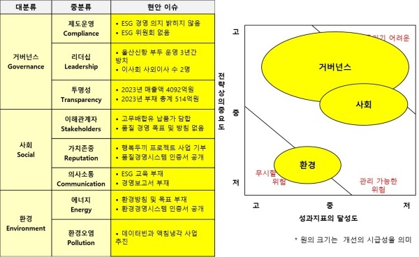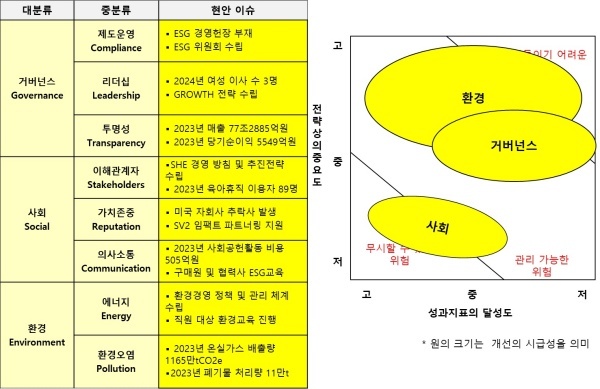 ◇ ESG 종합 추진체계 수립해 실천 노력은 호평... 환경이 가장 관리하기 어려움 위험에 속해