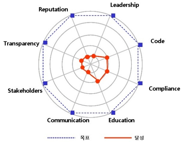 ▲ [그림 28-1. 8-Flag Model로 측정한 공항공사의 윤리경영 성취도]