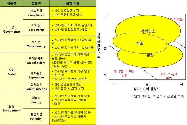 홈페이지와 알리오에서 공개한 수치 차이 발생... 거버넌스·환경 대비 사회 지표의 개선 필요성이 가장 낮아