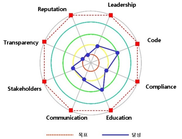 ▲ 그림1. 8-Flag Model로 측정한 코레일의 윤리경영 성취도