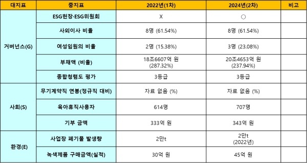 ◇ 2022년 ESG 1차와 2024년 2차 평가 비교... 경영진·노조 모두 정상경영을 위한 혁신 부족해