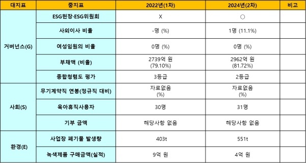 ◇ 2022년 1차 및 2024년 2차 평가결과 비교... 2년 간 ESG 경영이 개선됐지만 여전히 부족해