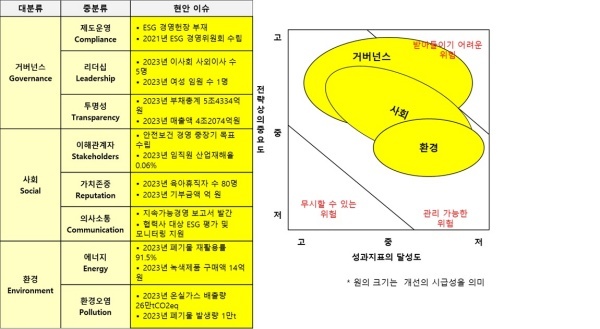 ESG 경영 의지 표명하며 5대 핵심전략 수립... 2023년 온실가스 배출량 26만tCO2-eq로 증가세