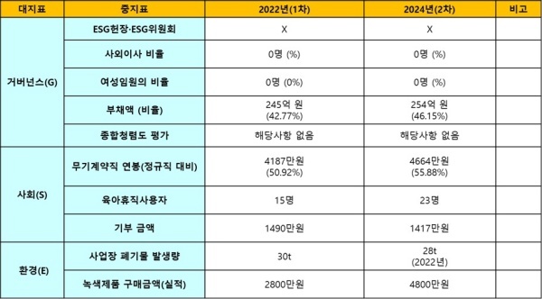 ◇ 2022년 1차 및 2024년 2차 평가 비교... 사외이사·여성임원 0명으로 거버넌스 낙제점으로 혁신 불가피