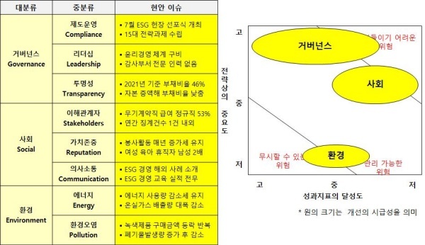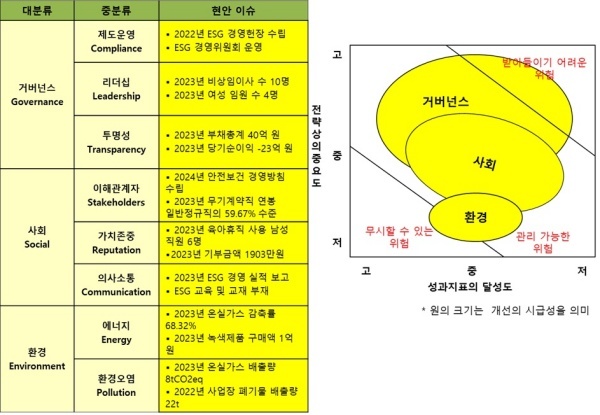 △사회(Social)=사회는 안전보건경영을 추진하고 있으며 재난을 방지하기 위한 노력을 추진 중이라 관리 가능한 위험이라고 평가했다.