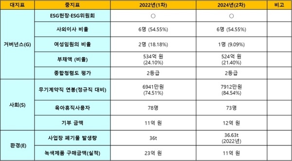 △거버넌스(Governance·지배구조)=거버넌스는 2022년 ESGI+ 경영 추진을 선포하며 구체적인 전략목표를 제시했지만 두드러진 성과는 없다.