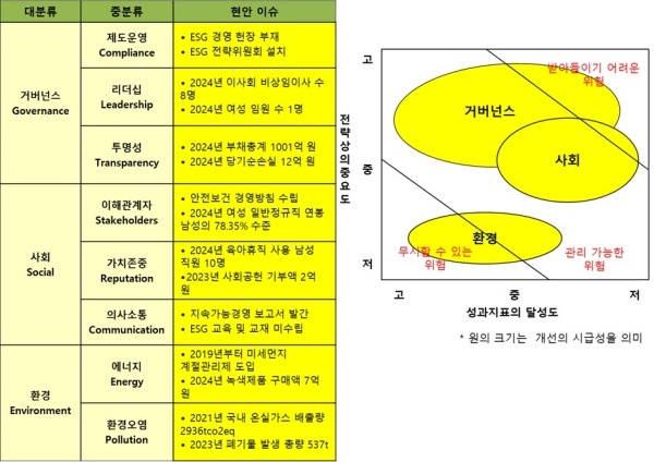 ◇ 2024년 ESG 경영 2차 평가... ESG 추진 방향 및 체계 수립했으나 경영헌장은 부재