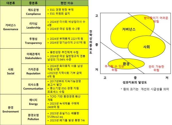 △거버넌스(Governance·지배구조)=거버넌스는 2021년 ESG 비전을 수립했지만 정작 중요한 ESG 헌장은 제정하지 않아 개선이 시급하다고 평가했다.