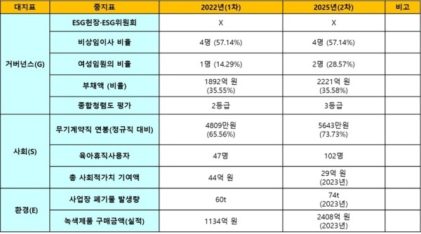 독립성과 전문성을 확보해 내보통제시스템 고도화룰 추진하기 위해 노력한다. 사후 관리 중심에서 사전 예방 중심으로 통제 체계를 구축할 방침이다. 2022년 ESG 경영 1차 및 2024년 ESG 경영 2차 평가결과를 비교해보자.