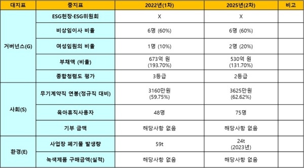 ◇ 2022년 1차 및 2024년 2차 평가 결과 비교... 거버넌스·사회·환경 등 전 영역 소폭 개선되며 '보통' 평가