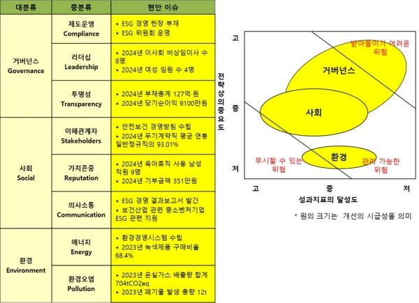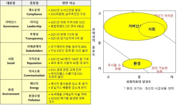 ◇ 사회·환경 양호하지만 거버넌스 보통... 경영 투명성과 경영 혁신 노력이 부족해 전체 ESG 경영 수준 미흡