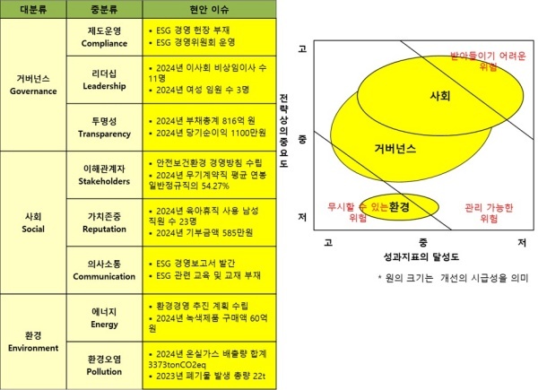거버넌스 부문 전략과제는 △윤리경영 및 투명경영 고도화 △의사결정체계 다양화 △내부견제 강화로 ESG경영 리스크 관리 △다양한 이해관계자 소통 확대로 정했다.