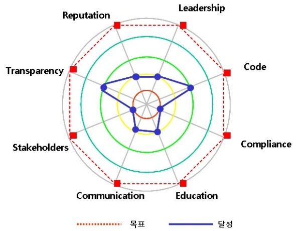 낙제점 수준을 보인 부문은 제도운영, 이해관계자 배려다. 나머지 리더십, 윤리교육, 의사소통, 사회가치 존중은 보통수준으로 평가할 수 있다.