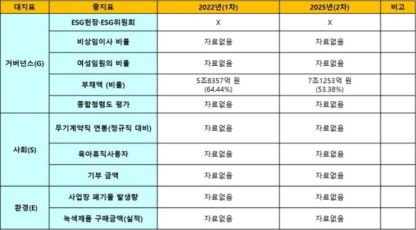 ◇ 2022년 1차 및 2025년 2차 평가... 거버넌스도 낙제점이지만 사회·환경 관련 정보는 전혀 공개하지 않아