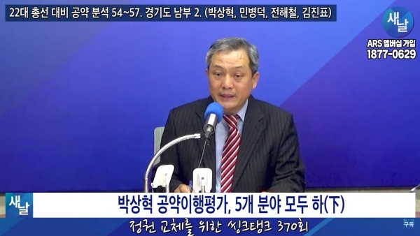 2024년02월20일(화요일) 새날 유튜브 방송은 2020년 21대 국회의원 선거에서 당선된 경기도 김포시을 박상혁 의원이 제시한 선거공약을 평가했다. 평가를 위한 방송에는 푸른나무, 이상구 원장, 민진규 소장(국가정보전략연구소)이 출연했다.