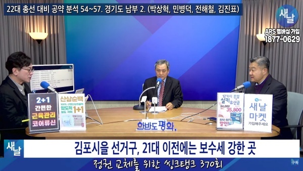 2024년02월20일(화요일) 새날 유튜브 방송은 2020년 21대 국회의원 선거에서 당선된 경기도 김포시을 박상혁 의원이 제시한 선거공약을 평가했다. 평가를 위한 방송에는 푸른나무, 이상구 원장, 민진규 소장(국가정보전략연구소)이 출연했다.