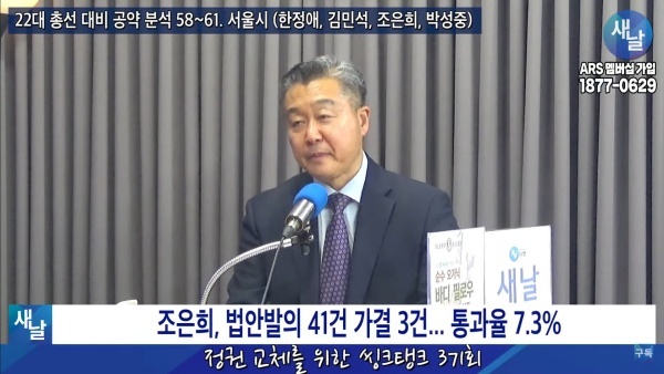 새날 “정권 교체를 위한 씽크탱크” 371회 : 22대 총선 대비 공약 분석 60. 서울시 서초구갑 조은희 의원
