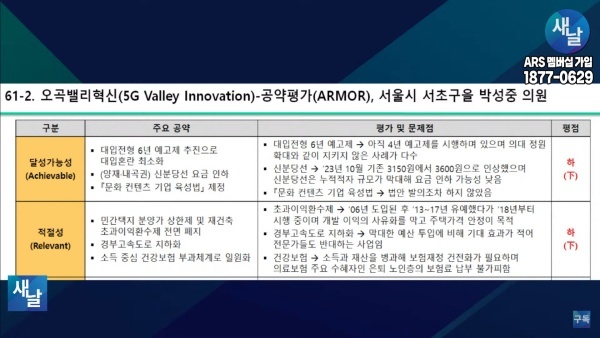 새날 “정권 교체를 위한 씽크탱크” 371회 : 22대 총선 대비 공약 분석 61. 서울시 서초구을 박성중 의원