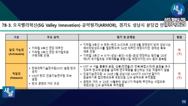 [국회의원 공약 평가] 78. 새날 방송, 경기도 성남시 분당갑 안철수 후보···달성가능성 등 5개 부문 모두 하(下)