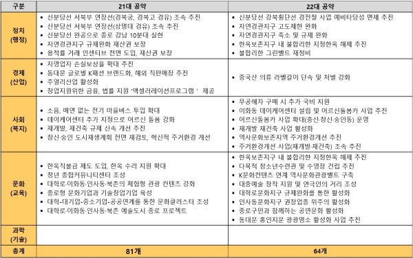21대에 비해 공약 대폭 축소됐지만 여전히 달성 가능성 낮고 부적절한 공약 다수