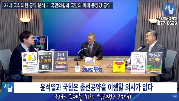 ▲ 왼쪽부터 푸른나무, 민진규 소장,이상구 원장[출처 = 22대 총선 국민의힘 정책공약분석 새날 유튜브 방송]