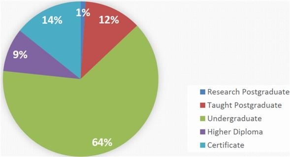 ○ 현재 학교에는 약 8,200명의 학생들이 재학 중이다. 대부분은 학부생으로 대학에는 단순한 자격증 공부를 위한 학생부터 대학원생까지 다양하게 분포가 되어 있다.