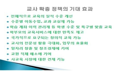 ▲ 교사 확충 정책의 기대 효과