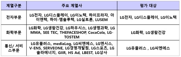 ◇ LG그룹의 주요 계열사와 평가대상 기업