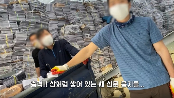 - 포장지도 뜯지 않은 신문들이 폐지로 계란판을 만드는 공장에 판매되고 있고, 특정 신문의 경우 발행되자마자 바로 동남아에 과일 포장지 용도로 말도 않되는 싼 가격에 폐지로 수출되고 있는 것이 확인된 것입니다.