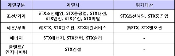 ▲ [표1. STX그룹의 주요 계열사와 평가대상]