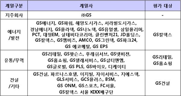 ▲ [표1. GS그룹의 주요 계열사와 평가대상]
