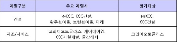 ▲ [표1. KCC의 주요 계열사와 평가대상]