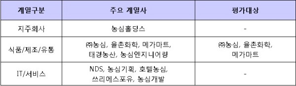 ▲ [표1. 농심의 주요 계열사와 평가대상]