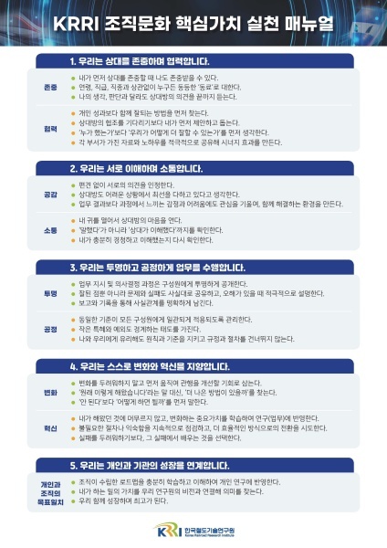 ▲ 철도연 조직문화 핵심가치 실천매뉴얼 [출처=한국철도기술연구원]