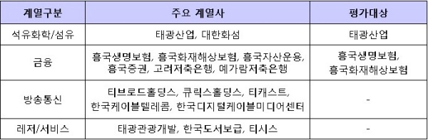 ▲ [표1. 태광의 주요 계열사와 평가대상]