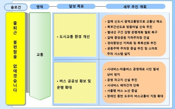 다음으로 버스 공공성 확보 및 운행 확대는 △시내버스·마을버스 공영제로 시민 혈세 낭비 방지 △공영 차고지 신설 추진 △시내버스 배차간격 단축 △서울행 버스 노선 증설 △장애인 동반 도우미 버스교통비 지원 확대 등으로 실현 가능하다는 입장이다.